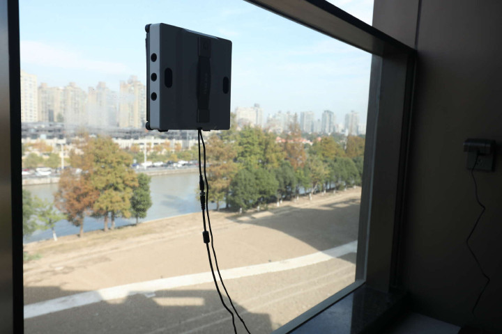 第一次用它擦客厅近6㎡的窗户时,我果然是抱着看见笑的心态。把机器东说念主往玻璃上一“啪”,按了一下启动键,吸附告捷,再按一下,它我方就开工了。