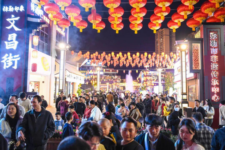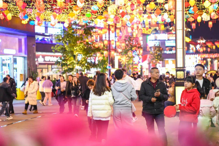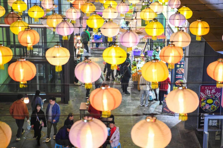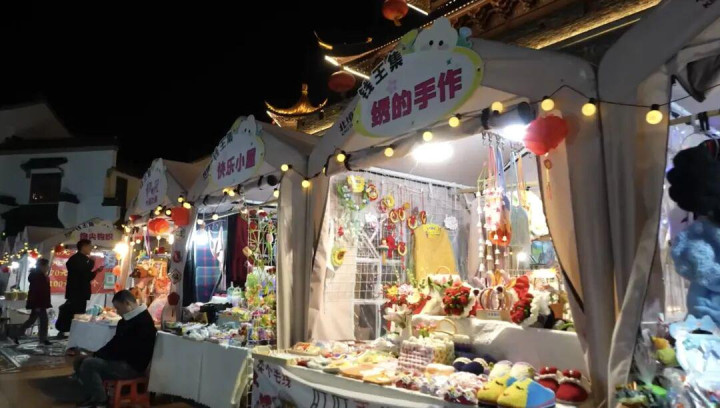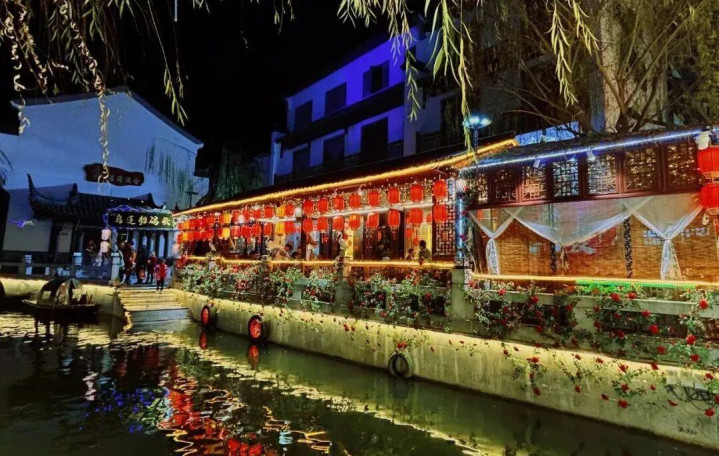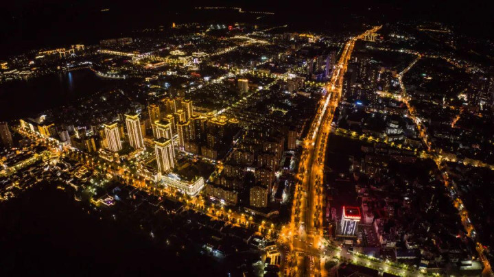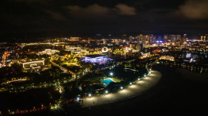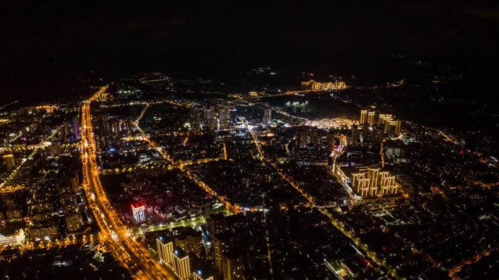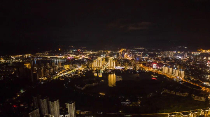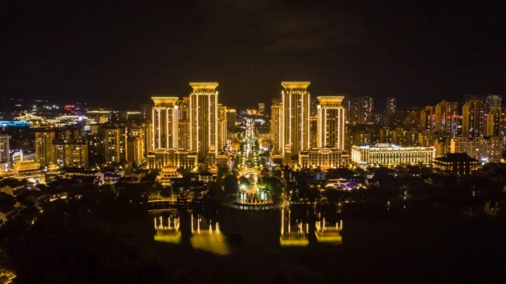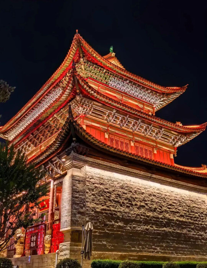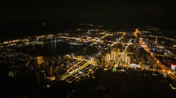 文昌宫与开国楼的青瓦飞檐融入这夜色