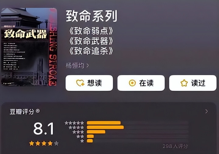 好像是以为执行里的间谍生涯太压抑,没法跟东谈主吹过劲,杨军假名“杨恒均”,在网上连载起了著明的“致命三部曲”——《致命瑕玷》《致命火器》《致命追杀》。
