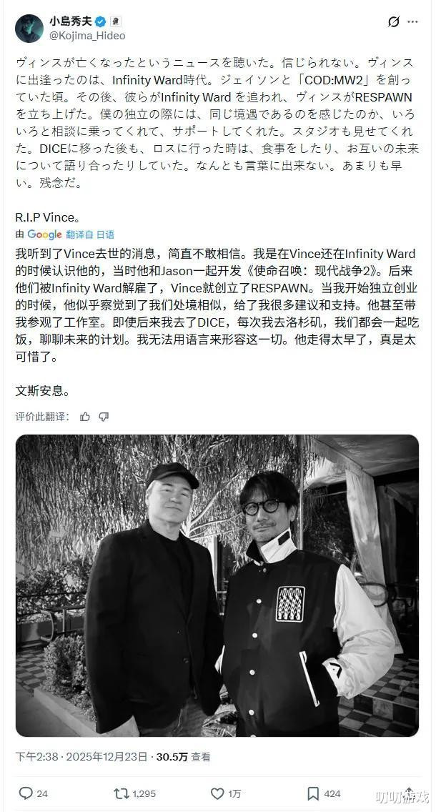 知名扶直者小岛秀夫,TGA首创东说念主杰夫·吉斯利等也发布了怀念推文,并示意他是一位伟大的扶直者,许多东说念主齐受到过他的匡助。