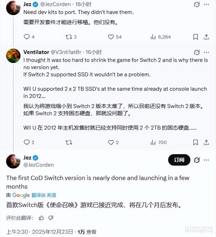 据微软业界知名东说念主士杰兹·科登流露,“Switch2版的《服务召唤》游戏已接近完成,将在昔时几个月内崇敬发布。”